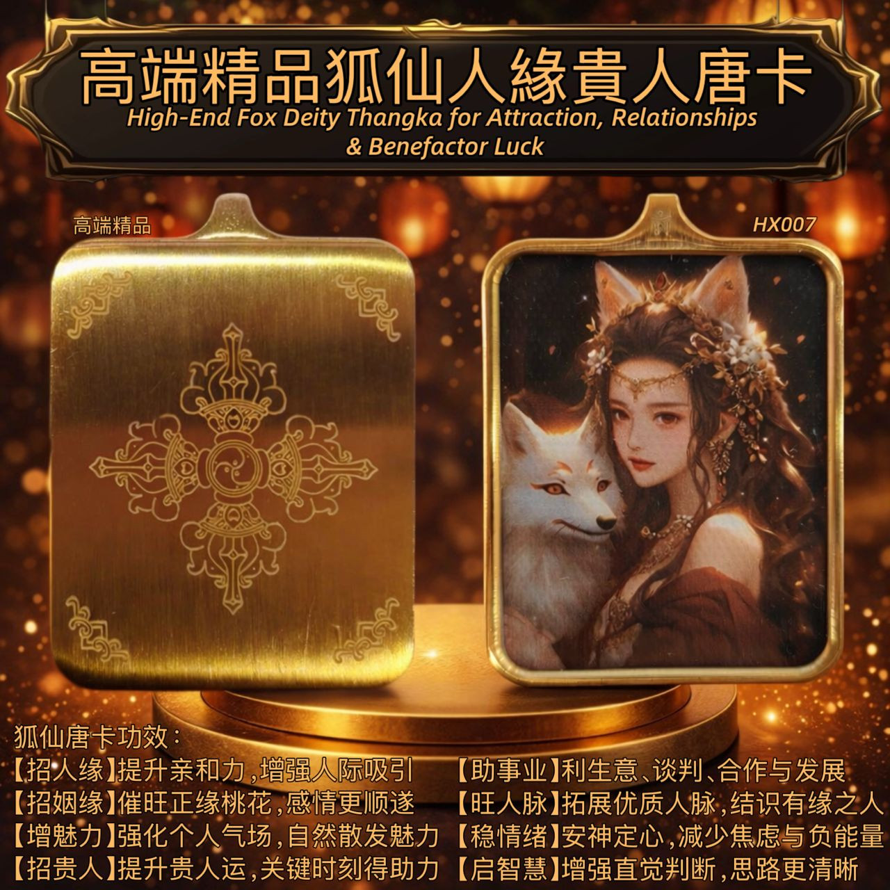 高端精品狐仙人緣貴人唐卡 5x4 | High-End Fox Deity Thangka for Attraction, Relationships & Benefactor Luck